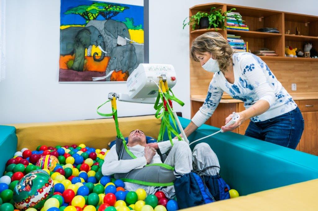 Denní stacionář Nesa poskytuje odlehčovací službu klientům od 4 do 55 let věku. Stropní systém pořízený z projektu IROP značně ulehčuje personálu jejich přesun po zařízení stacionáře.